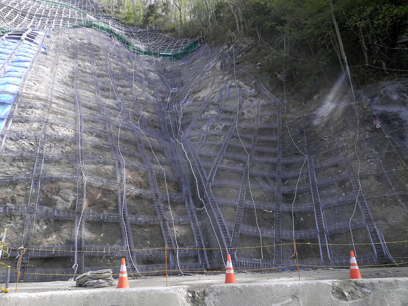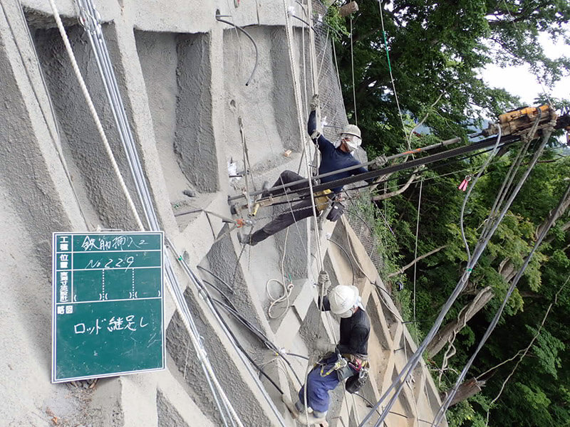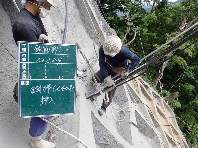 鉄筋挿入による切土斜面の補強をします。