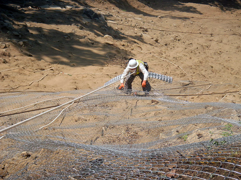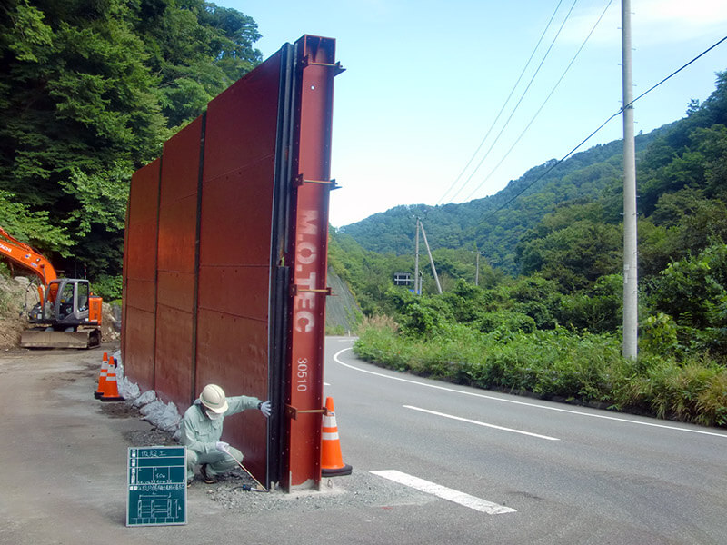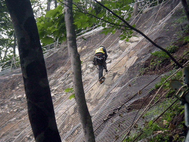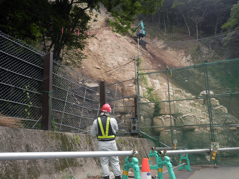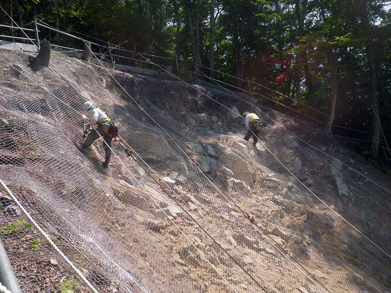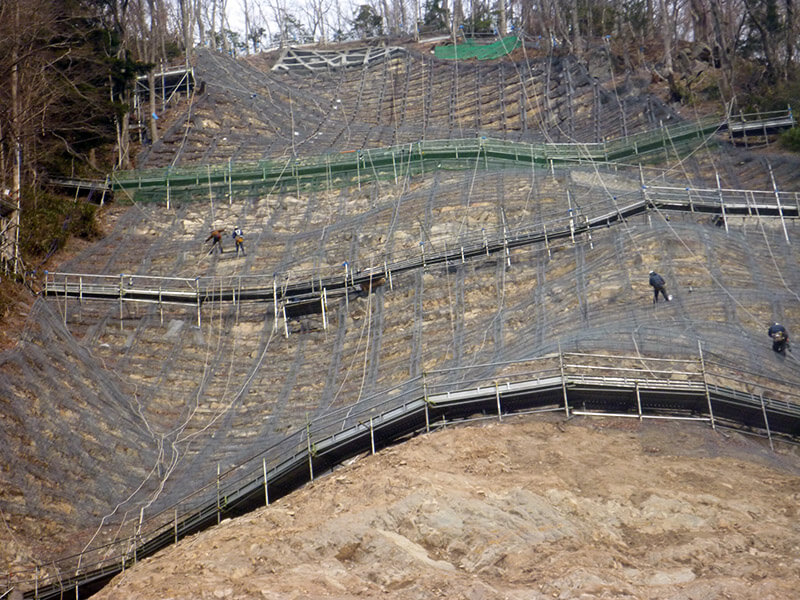工事による落石や落下物から斜面下の家屋を防護するために設置します。